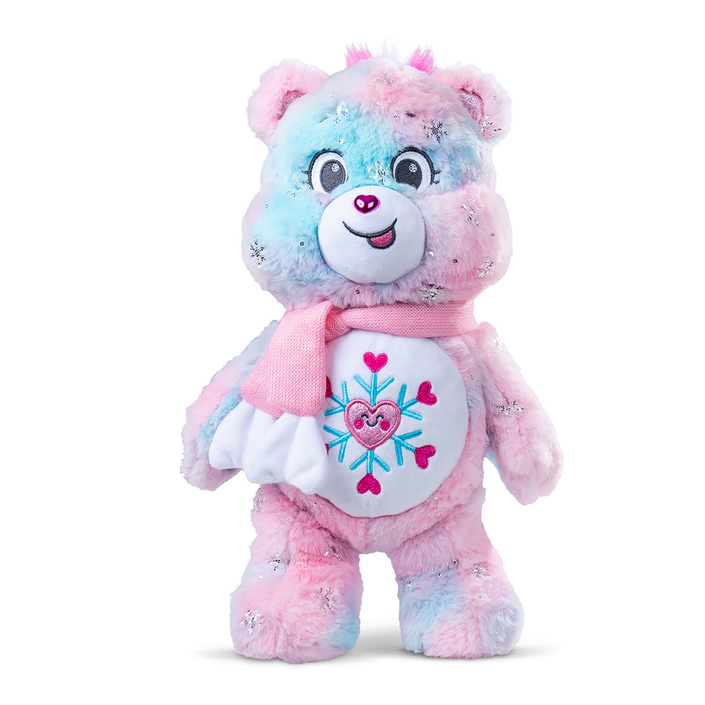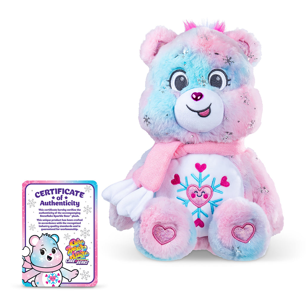 Introducing the Collector’s Edition 35 cm Snowflake Sparkle Bear a mesmerizing addition to the 2025 Care Bears collection that blends wintry elegance with plush charm. This beautifully crafted bear features soft, icy-blue fur enhanced by shimmering details that evoke the magic of freshly fallen snow.