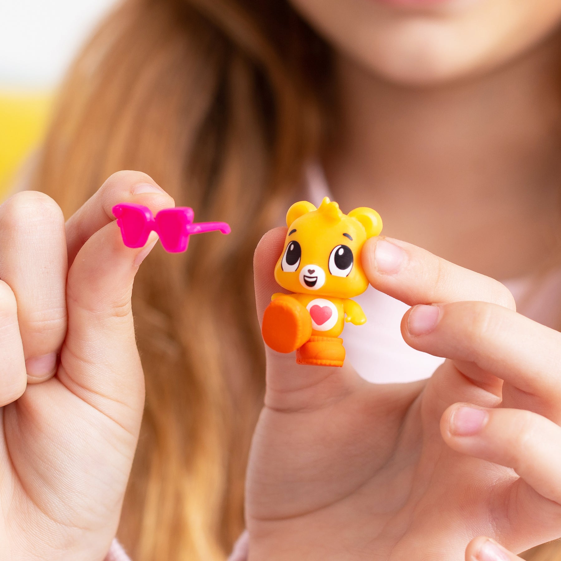 That's right! Your favorite, lovable Care Bears BFFs are now in MINI and can't wait to play with you! These Lil Besties will steal your heart with their adorable expressions and fun action poses. Open the mystery box to discover your new Lil Bestie inside! Will you take home Funshine Bear, Grumpy Bear, Tenderheart Bear, or another bear? Each container also comes with two fun accessories for your new little pal to play with. Open the box to play, then store everything back inside to transport them to your next sharing and caring adventure. These Lil Besties are perfect for at-home or on-the-go play!